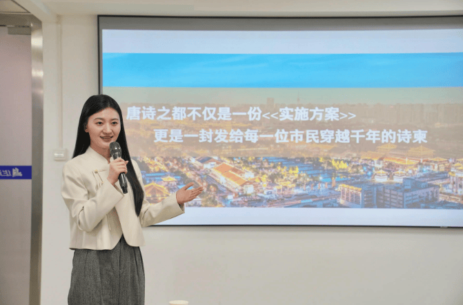 “为什么要打造‘唐诗之都’?答案,就藏在这座城市的基因里。”西安市新时代文明实践理论宣讲师梁佳嘉以《一封跨越千年的诗柬》为题,为居民群众解读“唐诗之都”的建设计划。她指出,打造“唐诗之都”,绝非简单复刻盛唐幻影,而是向每一位市民发出一封邀请函,邀请大家共同参与一场持续千年的文化盛宴。“它不仅仅是一份《实施方案》,更是一封穿越千年的诗柬,邀请我们以主人的身份,重新激活这座城市的文化基因。”她说道。